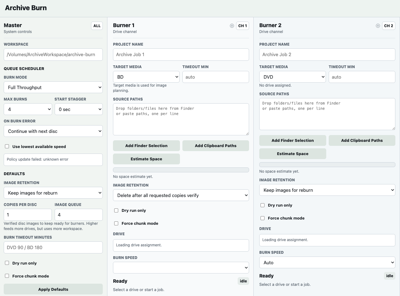 I was archiving a large photo dataset using multiple optical drives (2×BD, 2×DVD). Existing tools only support single-drive workflows or mirrored duplication, requiring continuous manual intervention.