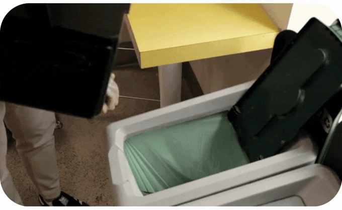 Deposit → close → empty → rinse/reset