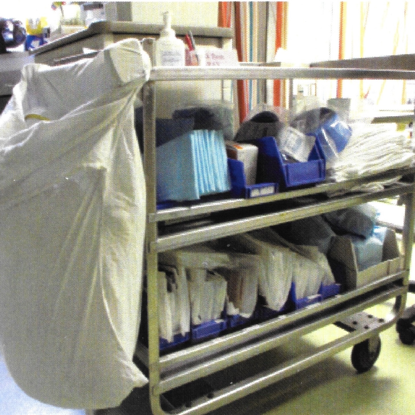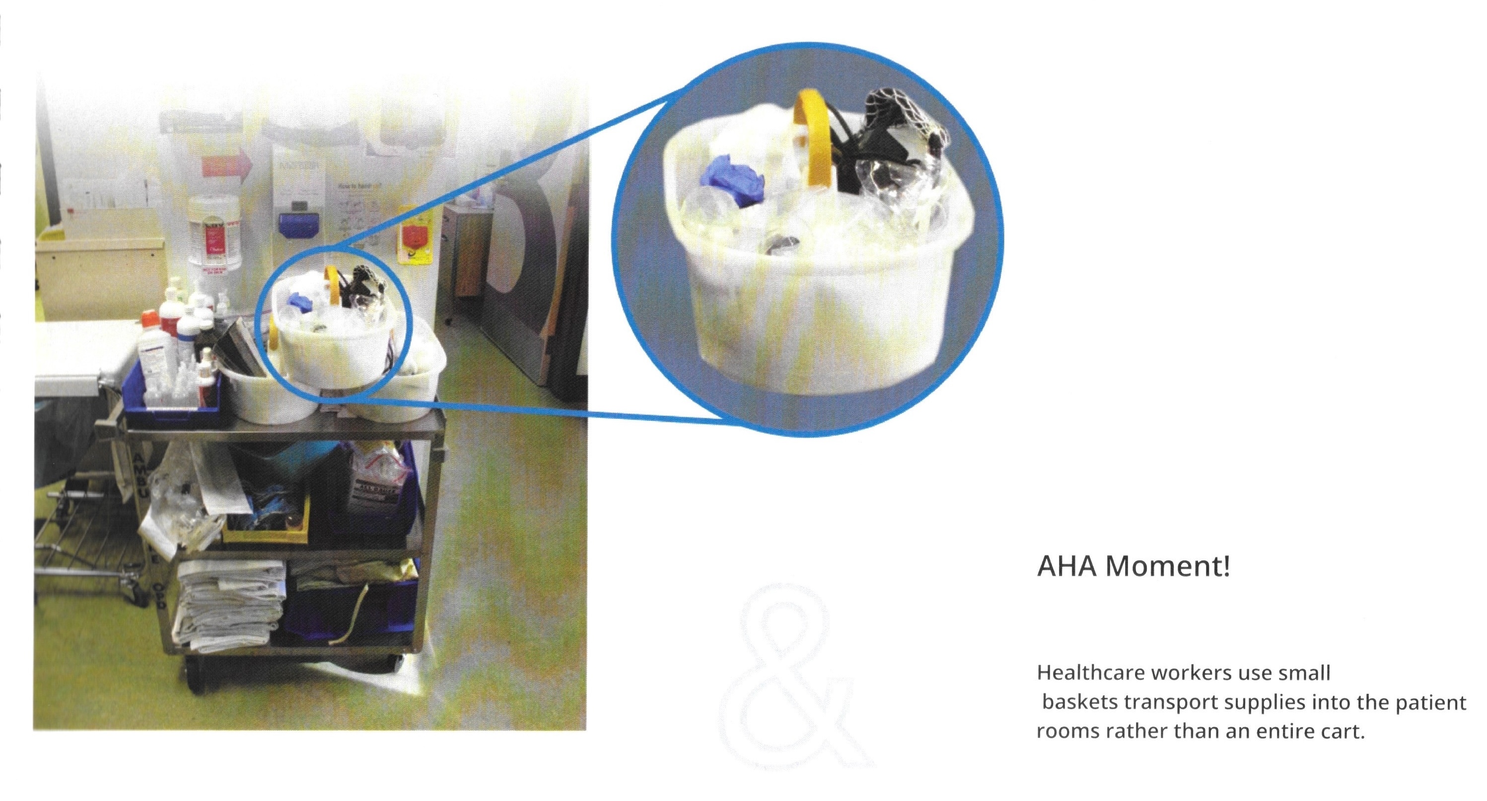 Instead of rolling the full unit into the exam room, they loaded small baskets or trays with only necessary supplies.